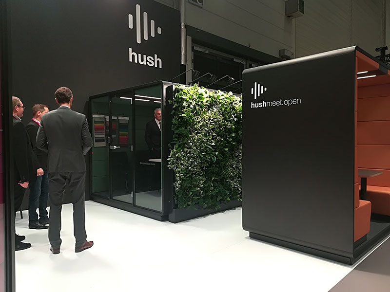 One of the first results of our work is HUSH Meet L - an innovative solution for office spaces to which we have provided green technology. HUSH meet L has been prepared by MIKOMAX Smart Office, the Polish manufacturer of office furniture, and it will be presented for the first time on October 23 at the ORGATEC 2018 Fair in Cologne. HUSH Meet L is a solution that will help with designing a unique office space in an original way and creating an independent office space in which it will be possible to hold meetings in silence. Advanced acoustic solutions effectively isolate sounds, and the closed form provides a feeling of privacy. This is a great alternative to design rooms and mini conference rooms.