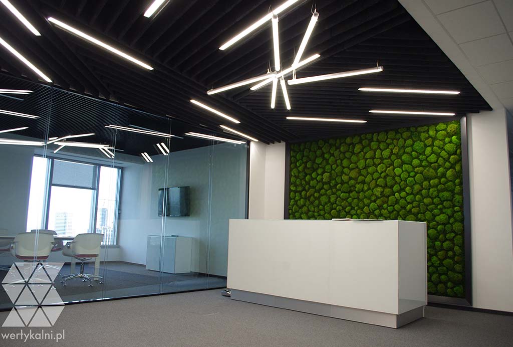 This is the first place where we welcome both our Customers and Applicants waiting for a job interview. Positive impression made when entering the office space builds in the eyes of the Applicants an image of a company that cares about employees and creates a friendly place to work, and at the same time an organisation that fits the trend of the office green decor. It is a simple and effective employer branding activity. The space behind the reception counter is a perfect place for a green wall made of moss or live plants, in which an additional display with the company's name and logo can be combined. We also offer logotypes made entirely of moss.