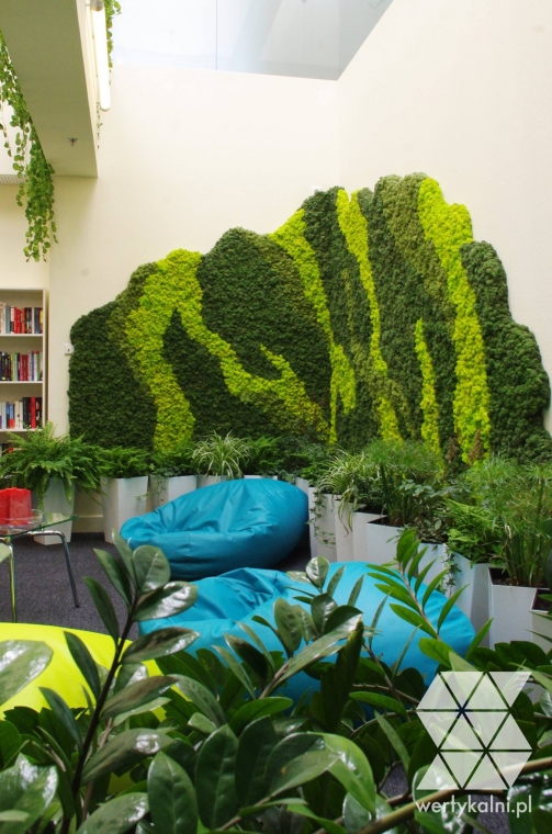 For one of the largest bookshops in Poland, we have arranged the space for relaxation and rest for employees. Greenery naturally soothes the senses, reduces the level of stress, which is why the relaxation zone is filled with stabilised vegetation and live plants, thanks to which the room perfectly fulfils the role of a safe relaxing haven and provides the employees with tranquillity through direct contact with nature.