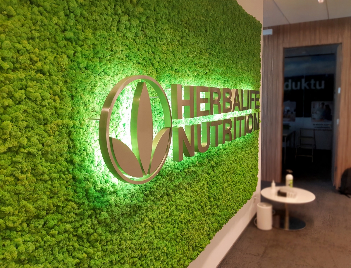 The mission of Herbalife, which is a global company, is focused on taking care of a healthy lifestyle which can also be noticed in the arrangement of the Warsaw office. Our first green wall in the subscription model has been installed just in the Herbalife headquarters; moreover, a reindeer moss panel presenting the company logo is placed at the office entrance.