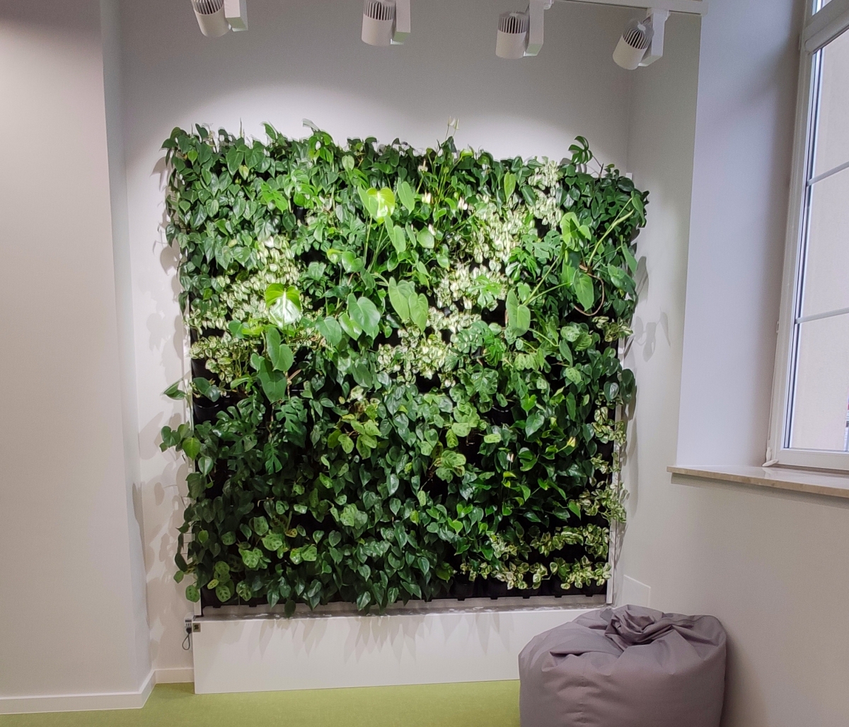The 9th Klementyna Hoffmanowa High School is the oldest high school in Warsaw. However, the school with almost 150 years of tradition is not afraid of innovative solutions. On the contrary, it responds to new trends such as biophilic design, as evidenced by placing an impressive green wall of made live plants in the building. The vertical garden climbs to a height of 279 cm and covers a total area of over 6.5 m2.