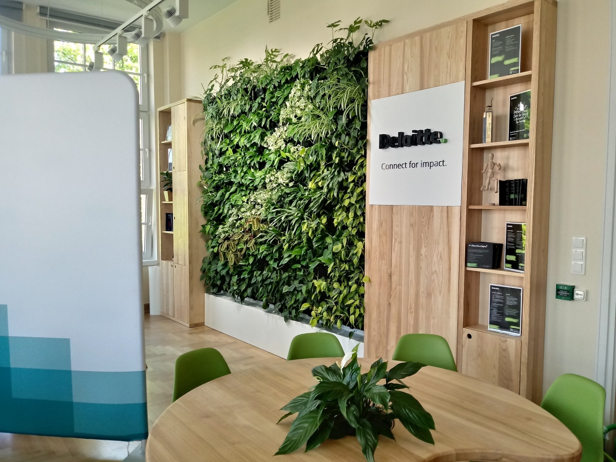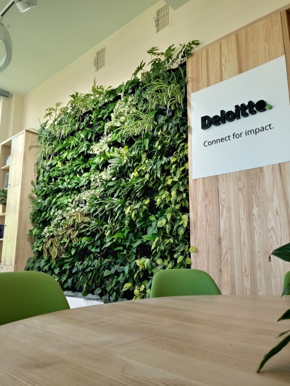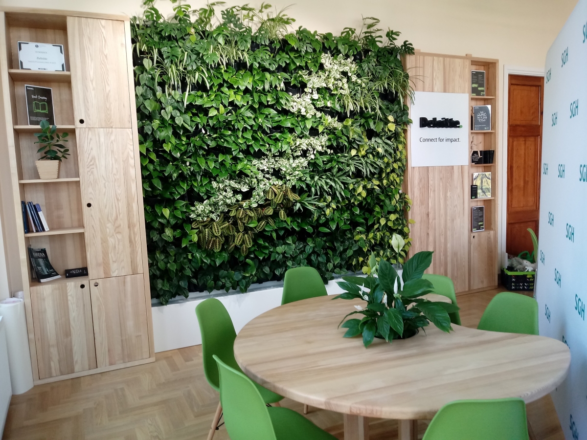 In February 2020, on request of the Deloitte company (representative of the SGH Partner Club), we implemented the project in the main building of the educational establishment in Warsaw. Classroom 212 has undergone a green metamorphosis thanks to the vertical garden with the closed circulation.