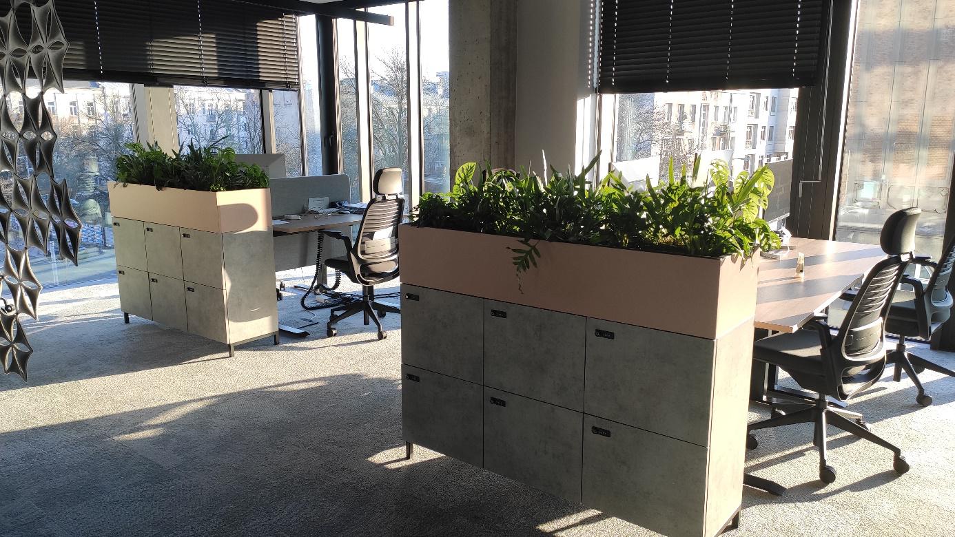 12. Schronienie – czyli odosobniony zakątek i prywatne miejsce, w którym można odpocząć od „wystawienia na widok”. Komfortowa bariera powinna otaczać człowieka z różnych stron. Dobrym rozwiązaniem mogą być fotele z wysokimi zagłówkami, wydzielone strefy komfortu oraz meble z wbudowaną roślinnością wertykalną. Ogrody pionowe, które służą jako roślinne ścianki działowe, sprawdzają się np. do wydzielania przestrzeni na open space oraz do odgradzania od siebie pojedynczych stanowisk pracy (co skutecznie buduje poczucie prywatności i bezpiecznego schronienia).