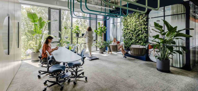 Równolegle do angażowania inteligentnych technologii, w trendach na 2025 r. jest wprowadzanie do biur elementów natury. Zielona roślinność i dostęp do naturalnego światła niezmiennie wpływają na samopoczucie człowieka, regulują nastrój, redukują stres, pomagają zaprojektować zdrowe i harmonijne środowisko pracy. Motywy biofiliczne, inspirowane przyrodą, kolory ziemi, wyposażenie z drewna lub jego imitacji działają pozytywnie na percepcję przestrzeni, ale prawdziwy efekt dla zdrowia psychicznego i fizycznego daje zastosowanie w aranżacjach żywej zieleni.